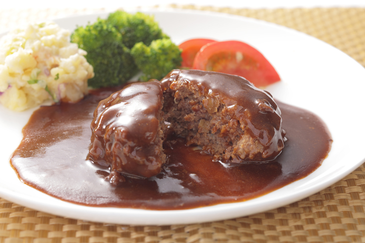 じっくり煮込んだコクのあるデミグラスソースが鯨ハンバーグによく合います。