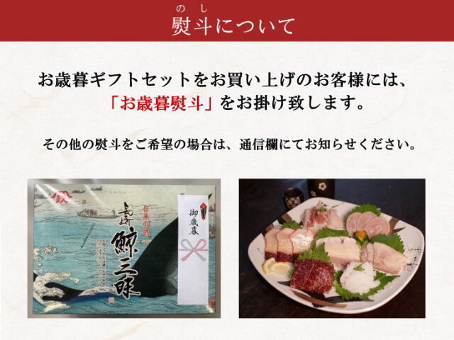 | 内容量 | 尾の身約100g/ベーコンスライス約100g/すえひろスライス約100g/さえずりスライス約100g/湯かけくじら約100g/上オバ鯨約100g/百ひろ約70g |