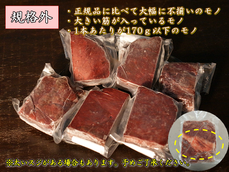 正規品に比べて太いスジがあるものや、大幅に不揃いのもの(変形)、1つあたりが170g以下のものになります。
